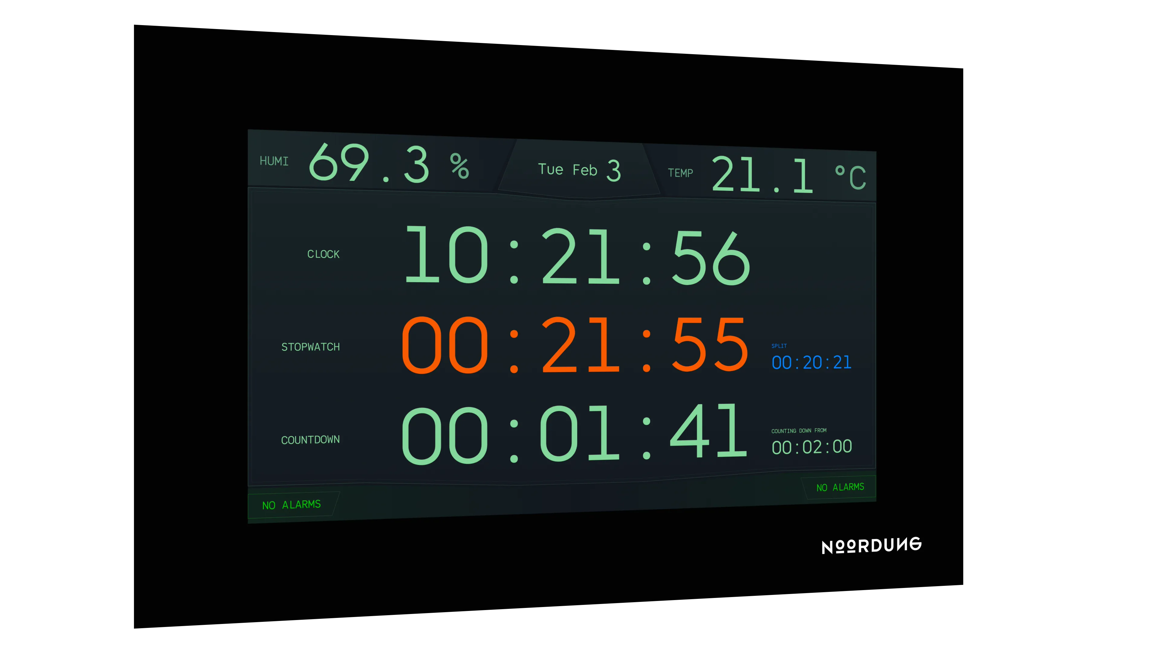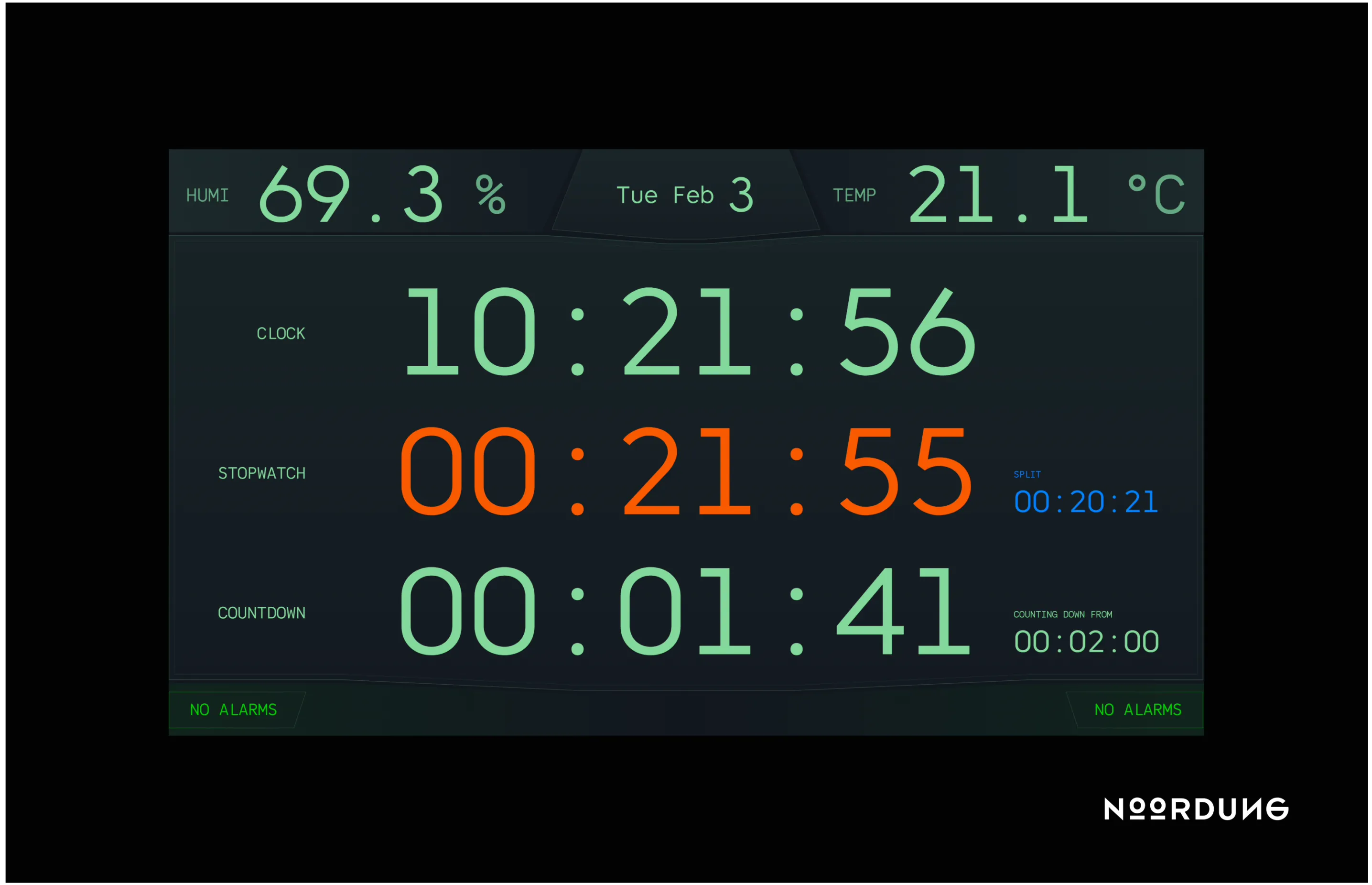 The integrated NOORDUNG Clock works seamlessly with the Surgical Control System (SCP), receiving real-time data on temperature, humidity, and pressure.