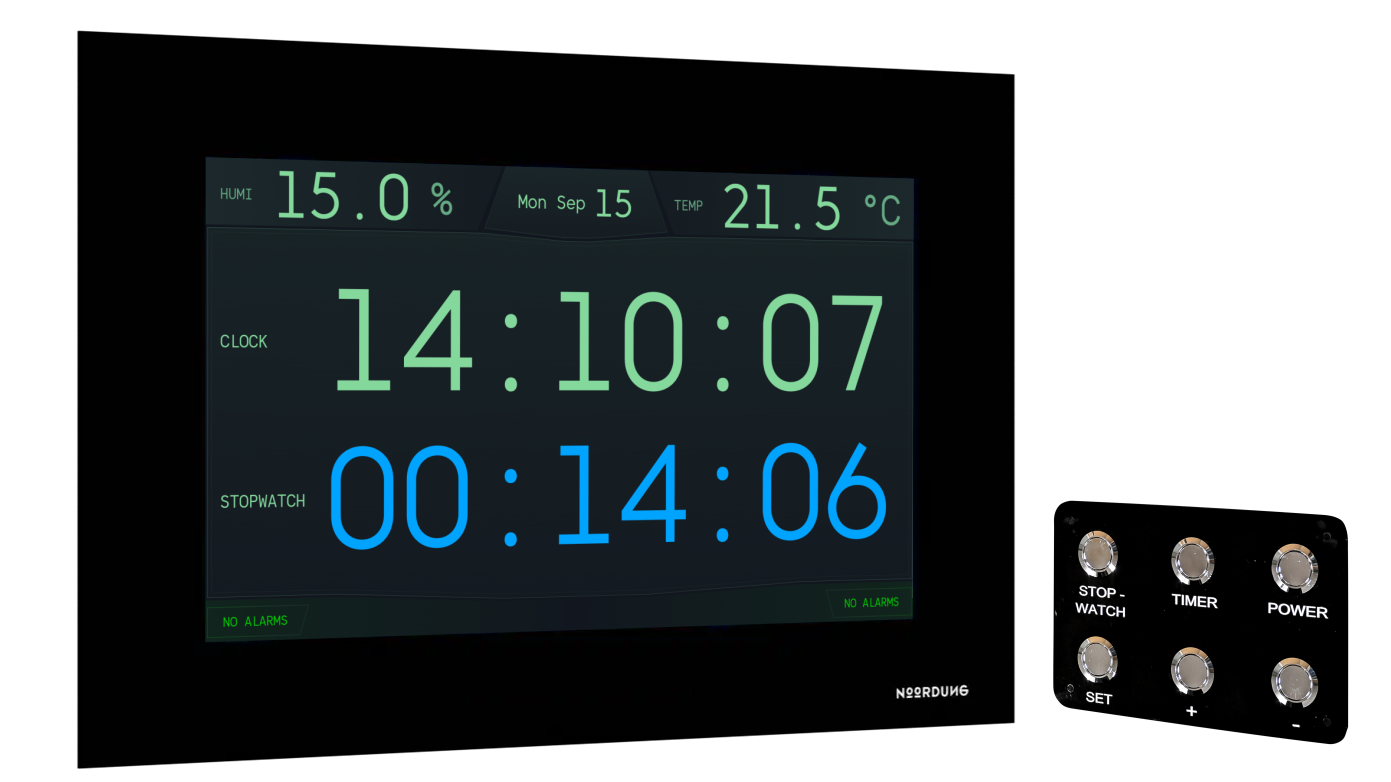 Developed for the most complex demanding and requirements, the NOORDUNG CLOCK is the most powerful and secure way to measure time in the operating theatre. They are easy to install and do not need any additional programming. Costumer can use among basic (clock, stopwatch), medium (clock, stopwatch, temperature, humidity, pressure) and all inclusive (clock, temperature, humidity, stopwatch, timer, alarms) options. It can be operated by analogue or digital inputs for alarms.