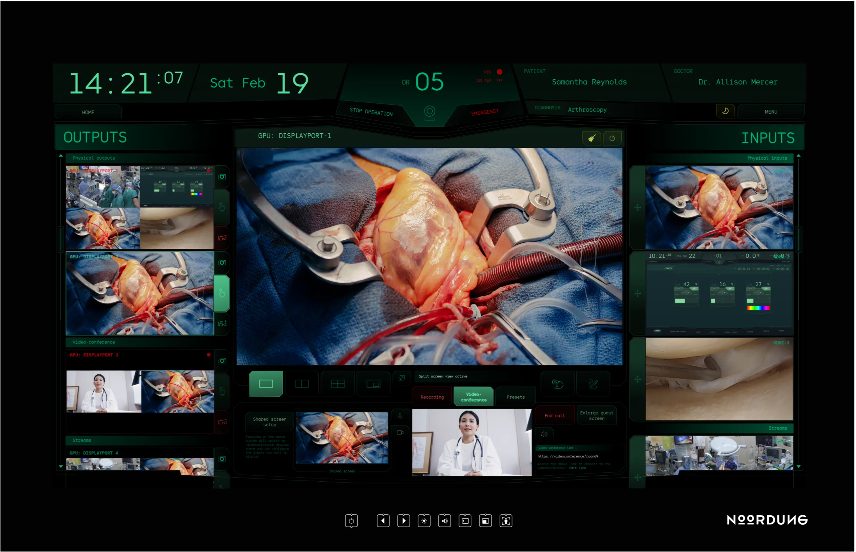 NOORDUNG Visor empowers surgical teams with real-time video routing, recording, and streaming. From flexible multi-layout previews to intuitive control and data integration, it delivers clarity, efficiency, and scalability for every procedure.
